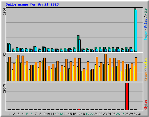 | Day | Hits | Files | Pages | Visits | Sites | KBytes | ||||||